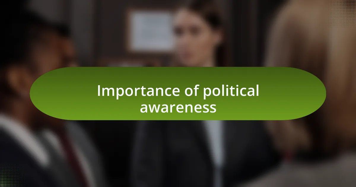 Being politically aware is crucial for understanding the landscape in which we live. I remember a time when I used to think politics was distant, something that didn’t affect my daily life. But once I started paying attention, I realized how policies impact everything, from the schools my children attend to the air quality in my neighborhood. Isn’t it fascinating how connected we all are to these issues?